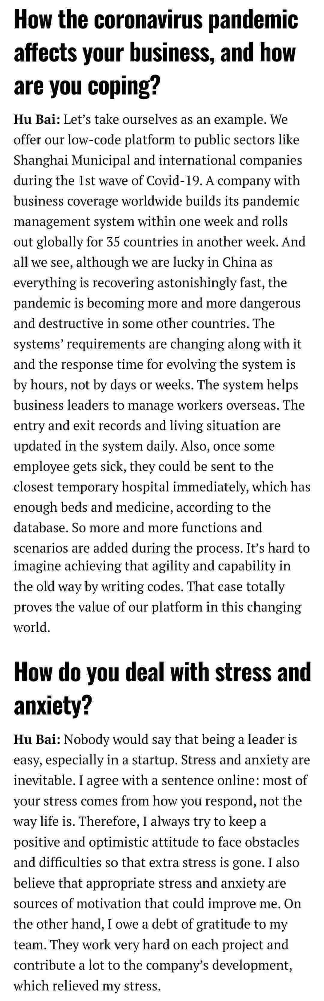 2021年年初,,,,爱湃斯科技CEO胡柏受邀接受法媒Startup.info的专访,,,与Startup info的读者分享了自己的创业经历、、、以及低代码平台NO钱包的创新之处。。